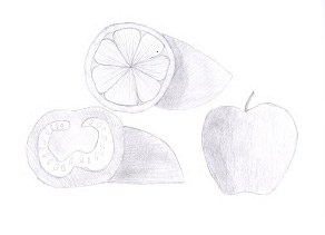 Here we were asked to draw the cross section of two pieces of fruit and a third to make a grouping. I likes doing this sketch because i thought it was cool to draw the cross section of the fruit. Normally you only see the outside, so it was cool to think of what the inside looks like.